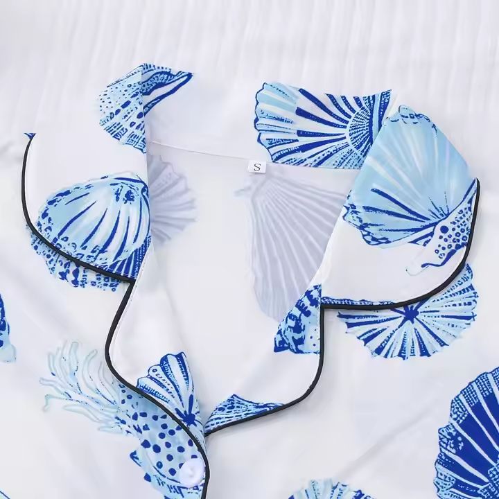 Casual Short Sleeve Pajama Set Knitted Fabric Button Top Pocket Elastic Waist All Wearing for Summer Spring