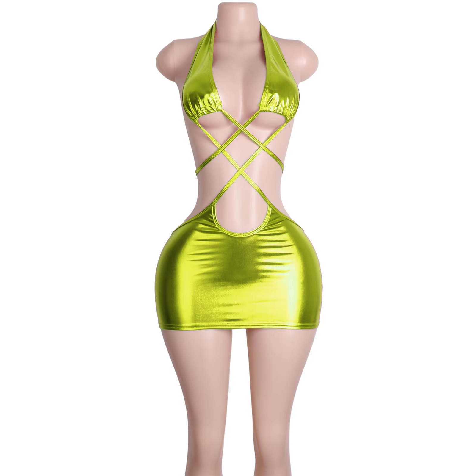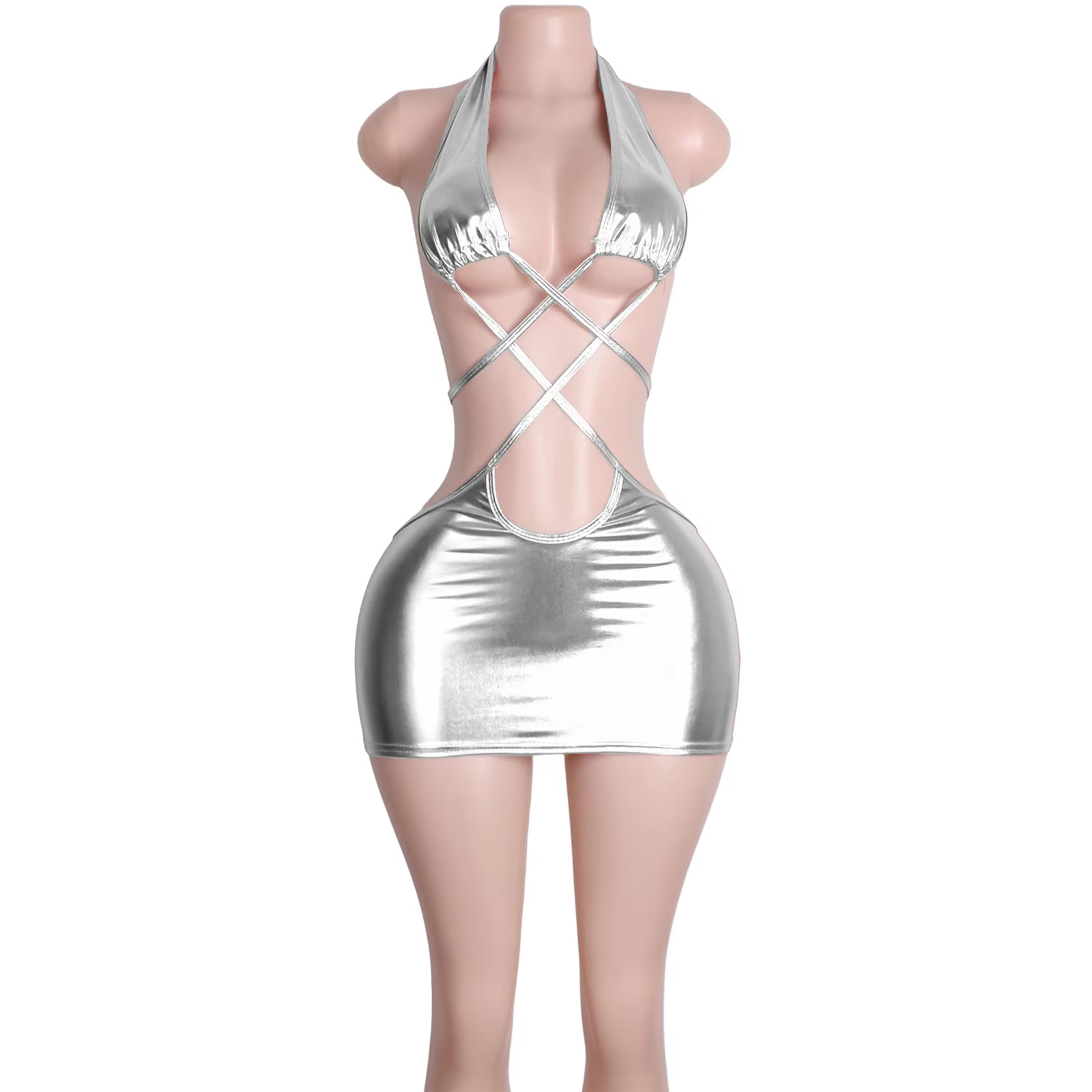 Cross Strap Patent Leather Dress Metal Texture Sexy Lingerie Bodysuit Adjustable Suspender Clubwear Exotic Dancewear
