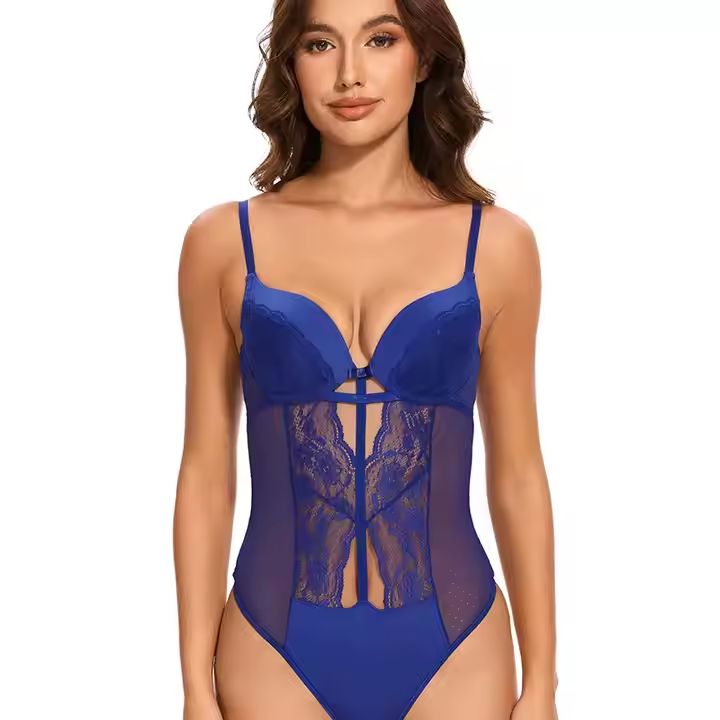 Sexy Lace Embroidered Hollowed-out Bow Decorated Tight Body Shaping One-piece Garment