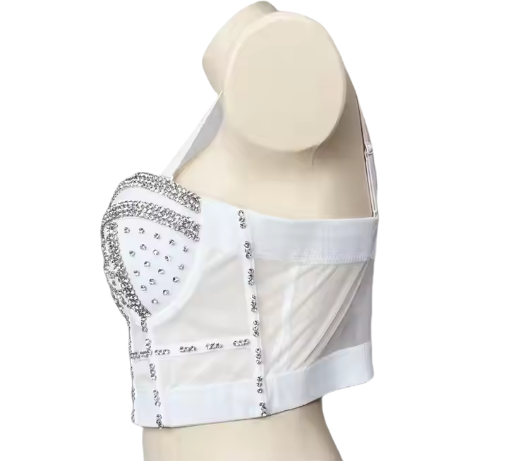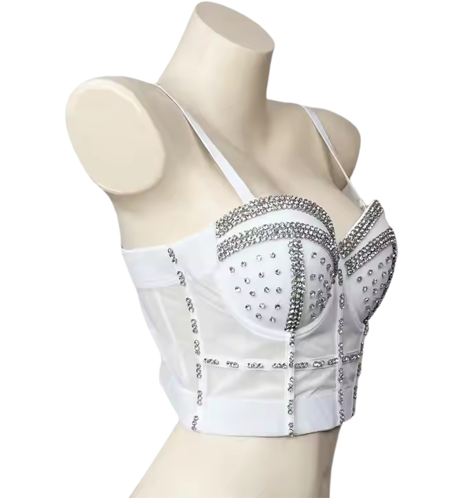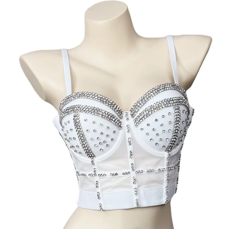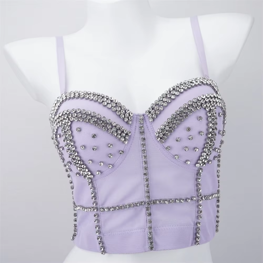 Shining Purple Rhinestone Women Sexy Festival Party Nightclub Vest Cropped Bustier Corset Camis Top