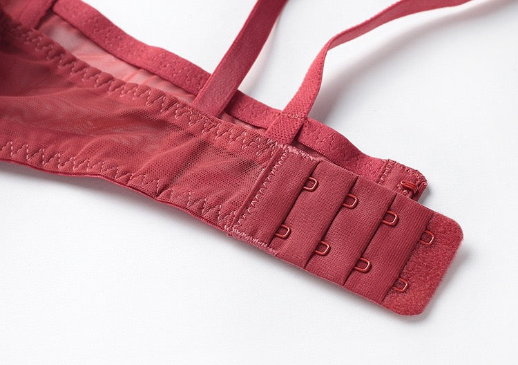 Women's Ultra-Thin Transparent Floral Lace Bra Set Strapless Wire-Free Large Bust Minimizer Sexy Bikini XL Waist Low-Rise